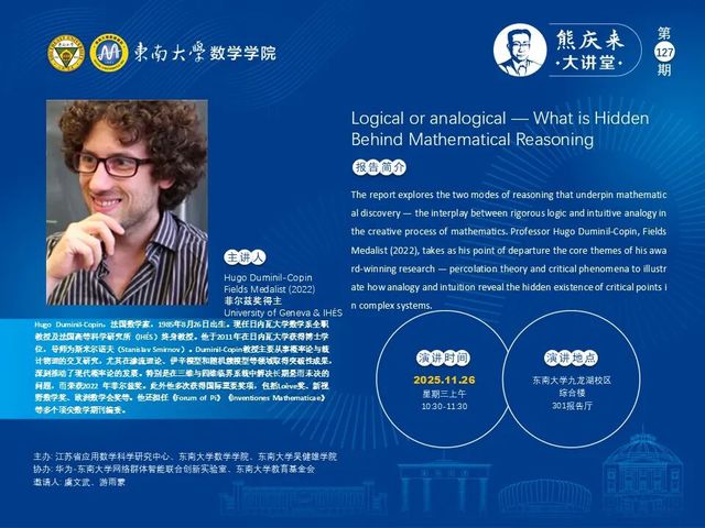 熊庆来av电影 127期:2025. 11. 26 (周三)10:30~11:30 - 菲尔兹奖得主 --- Hugo Duminil Copin